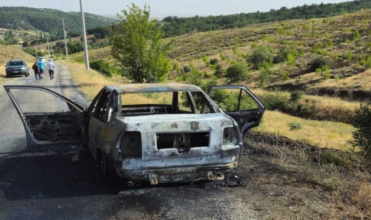 Çorum’un Alaca ilçesinde seyir halindeki otomobil alev alev yanarak kullanılamaz hale geldi.