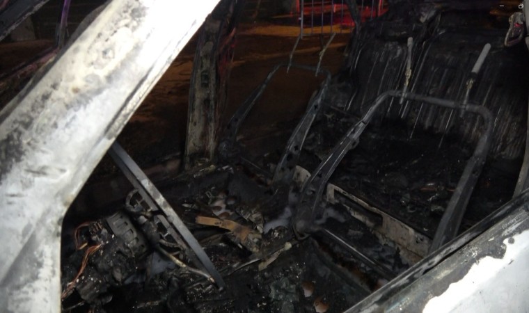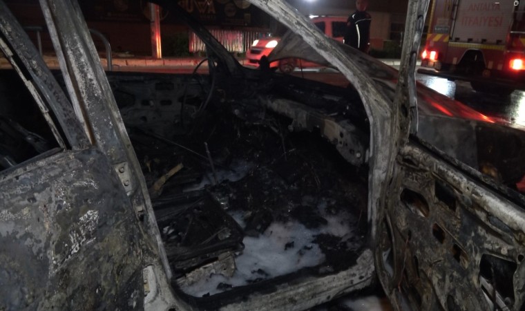 Antalya’nın Alanya ilçesinde seyir halindeyken alev alan otomobil kullanılamaz hale geldi.