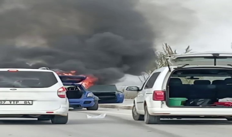 Antalya’nın Serik ilçesinde seyir halindeki bir otomobil alev alev yandı.