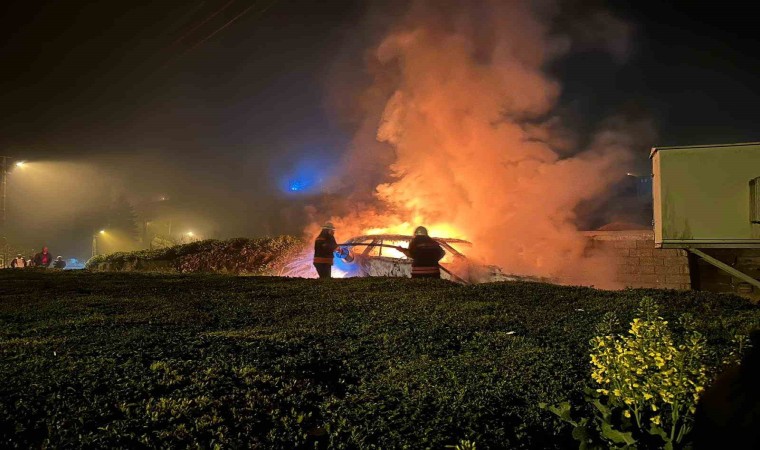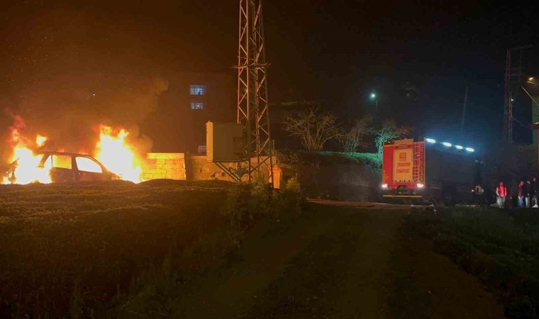Trabzon’un Of ilçesinde seyir halindeki otomobil dakikalar içinde kül oldu.