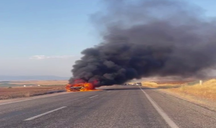 Adıyaman’da seyir halindeki bir otomobil çıkan yangında küle döndü.