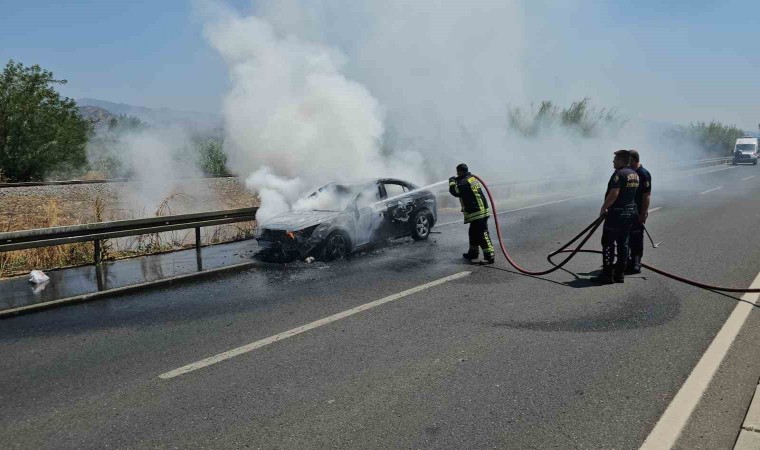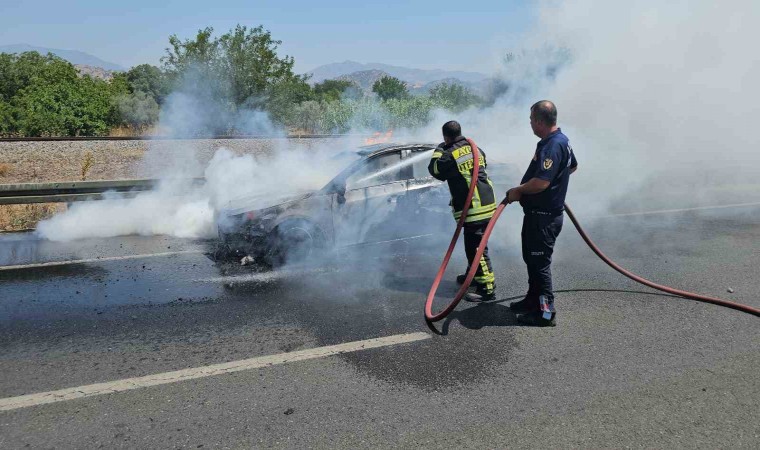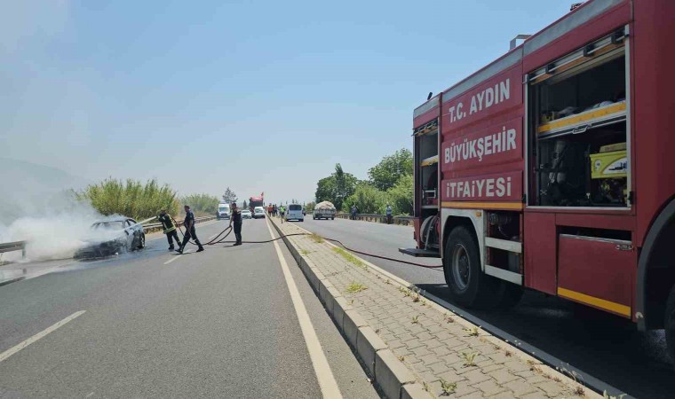 Aydın-Denizli karayolu üzerinde meydana gelen olayda seyir halindeki otomobilde çıkan yangın söndürülürken, araç küle döndü.