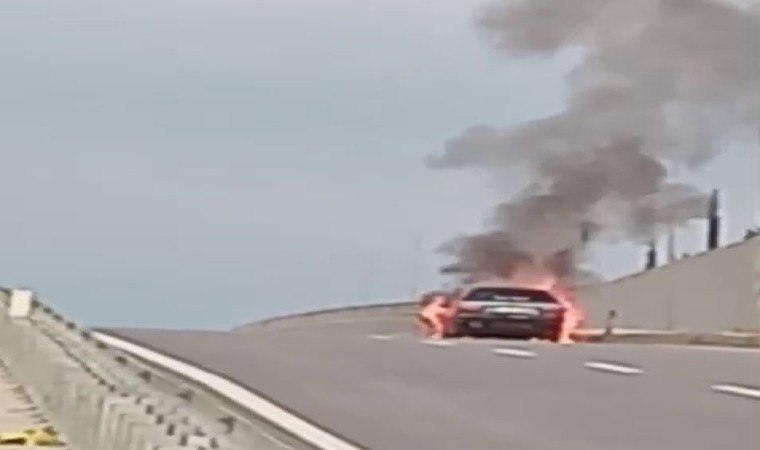 Adıyaman’da seyir halindeki bir otomobil alev alev yandı.