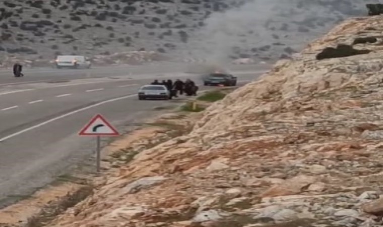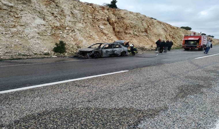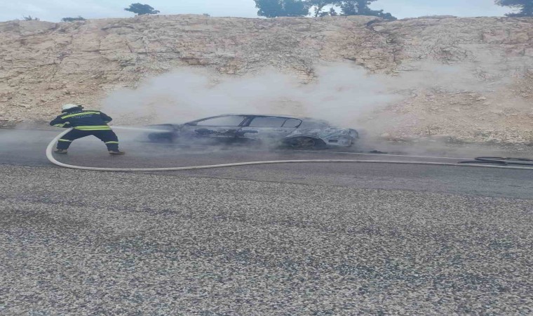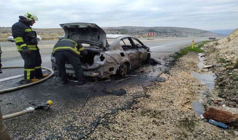 Gaziantep’in Yavuzeli ilçesinde 5 kişinin bulunduğu otomobil seyir halindeyken arka lastik kısmından yanmaya başlayarak, alev topuna döndü. Araçtakilerin son anda canını kurtardığı yangın sonrası otomobil kullanılamaz hale geldi.