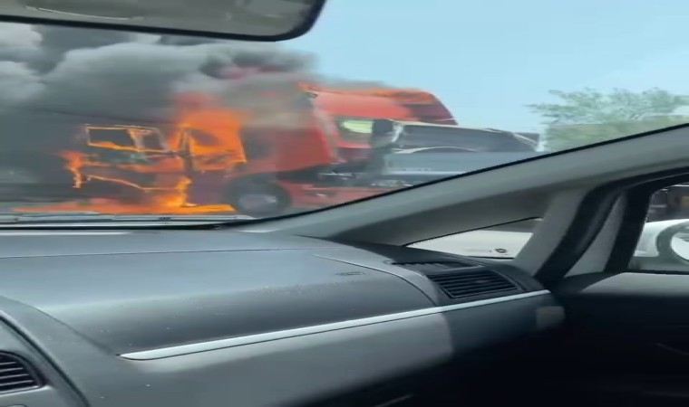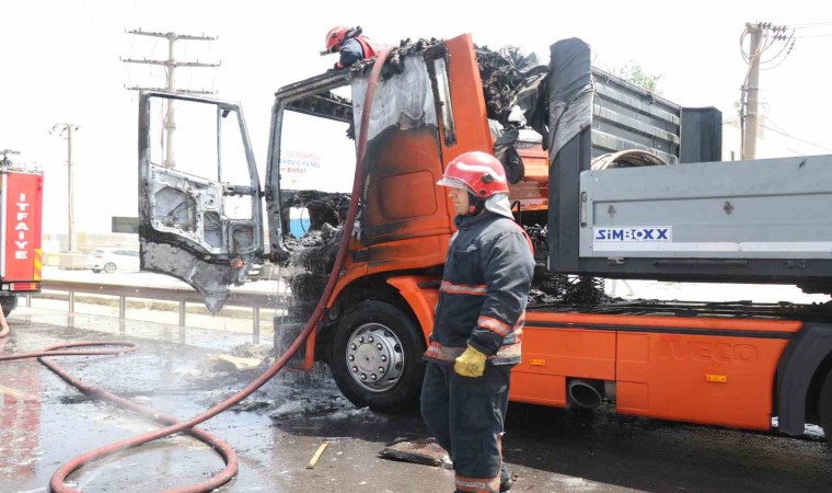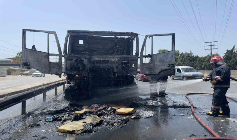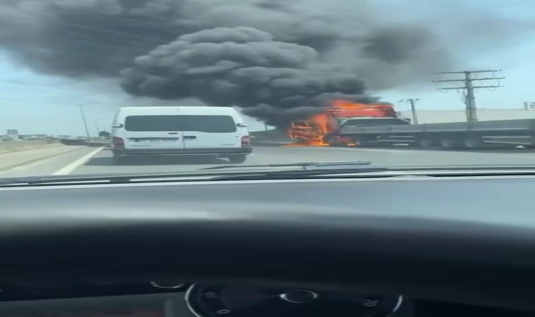 Sakarya’nın Arifiye ilçesi D-100 kara yolunda seyir halinde giden tır alev alev yandı. İtfaiye ekiplerinin müdahalesiyle söndürülen tırın kupası kullanılamaz hale geldi.