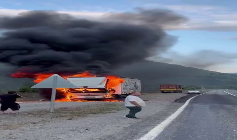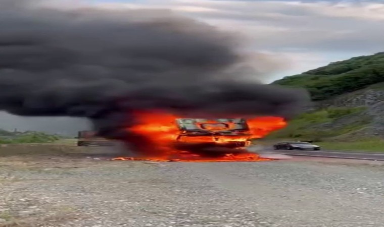 Karabük-Zonguldak yolunun Gökçebey istikametinde dün akşam saatlerinde korku dolu anlar yaşandı. Yol kenarında park halinde olan bir tırda, henüz belirlenemeyen bir nedenle yangın çıktı.