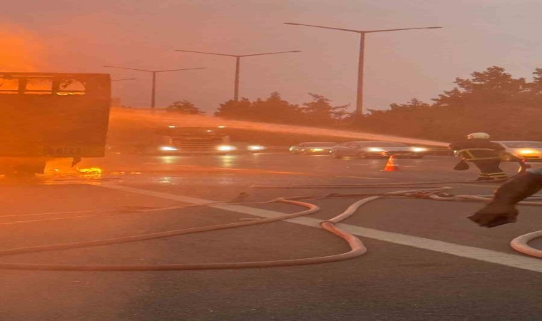 Adana’da seyir halindeki bir tır alev alev yandı. Yangın itfaiye ekiplerinin müdahalesiyle söndürüldü.