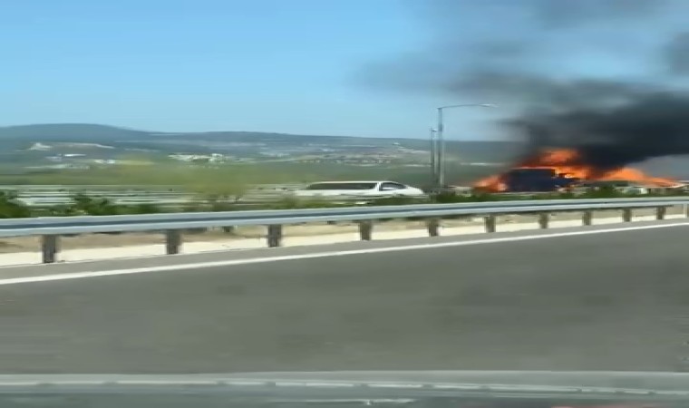Bursa’nın Karacabey ilçesi, Karacabey-Bursa otobanında seyir halindeki dorse yüklü tır arıza sonrası bir anda alev aldı. Hızla büyüyen alevler dorseye sıçradı. Alevler kısa sürede büyüdü. Alev topuna dönen aracı gören çevredekiler hemen 112 Ekiplerine bilgi verdi. İtfaiye ekiplerince yangın söndürülürken, tır kullanılamaz hale geldi. Olayda can kaybı veya yaralanma meydana gelmedi.