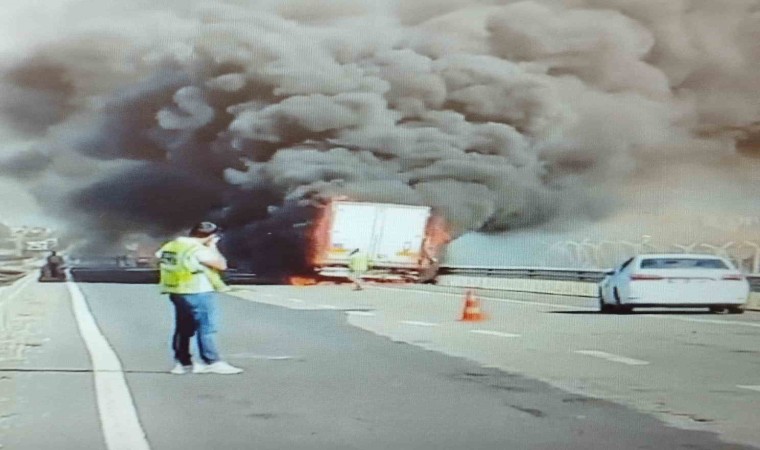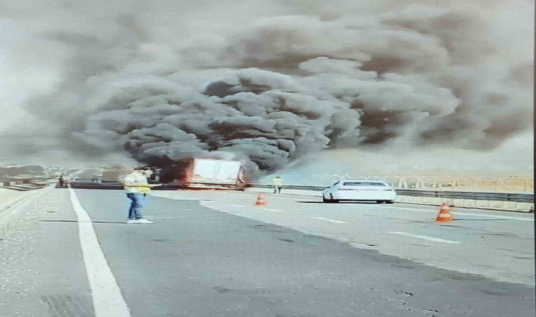 Mardin’de seyir halindeyken alev alarak yanan tırın dorsesi, paniğe neden oldu.