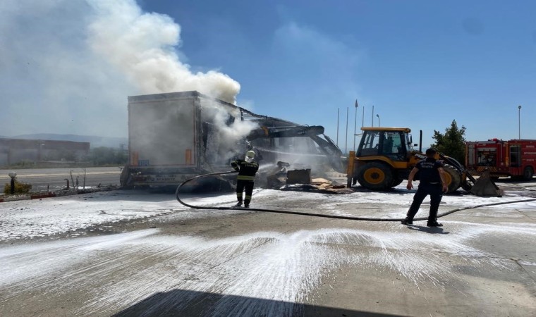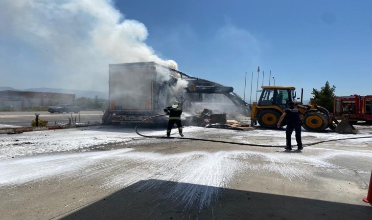 Ekiplerin müdahalesiyle yangın söndürülürken tırda maddi hasar meydana geldi.