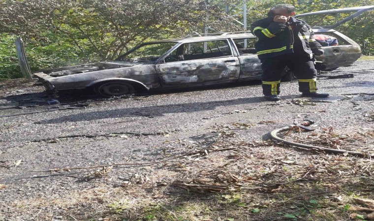Giresun’un Görele ilçesinde seyir halindeki Tofaş marka otomobil alev alarak yanmaya başladı. Sürücü araçtan son anda çıkarak kurtulurken, araçta yaşanan patlamalar görüntülere yansıdı.