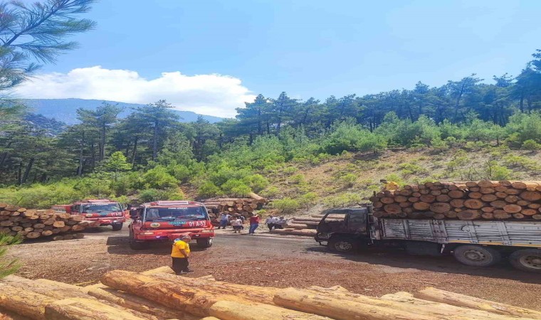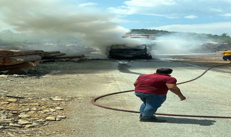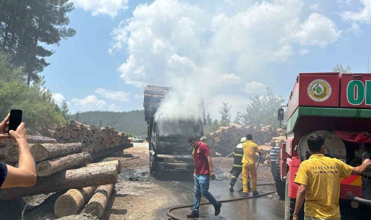 Adana’nın Feke ilçesinde tomruk yüklü kamyon yandı.
