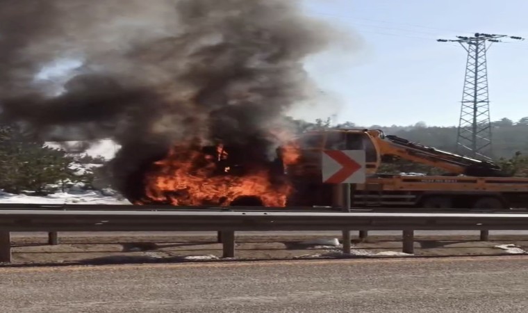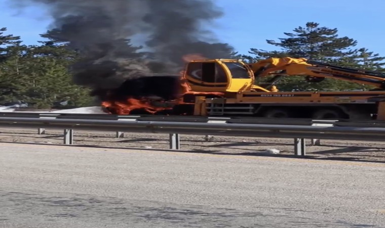 Kastamonu’da seyir halinde alevlere teslim olan vinç kullanılmaz hale geldi.