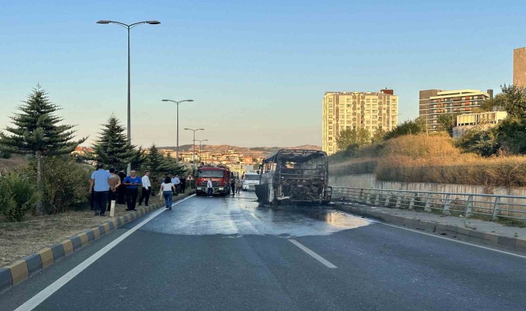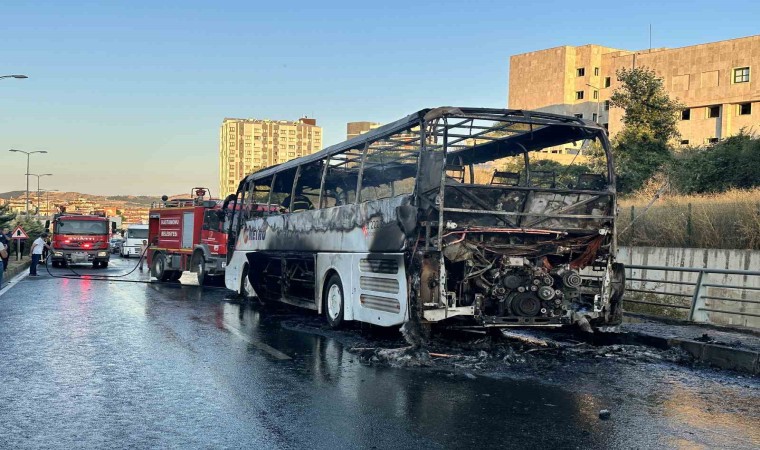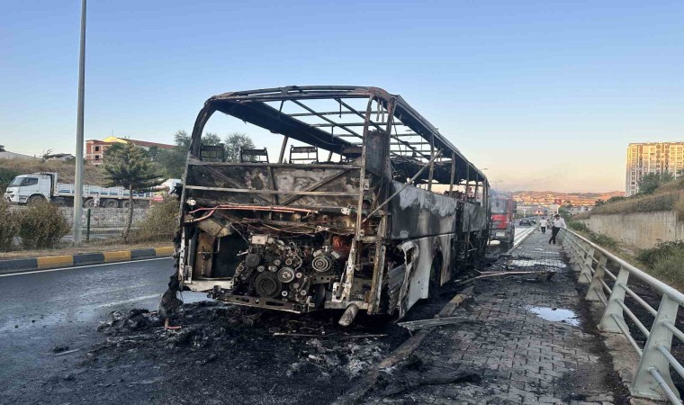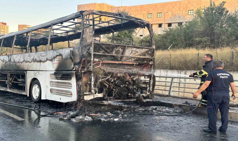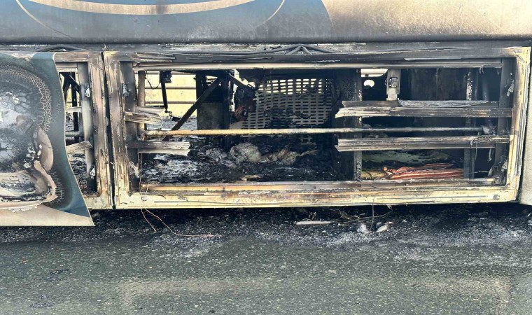 Kastamonu’da seyir halindeki yolcu otobüsü, alev alev yandı. Yanan otobüsten geriye hurda yığını kaldı.