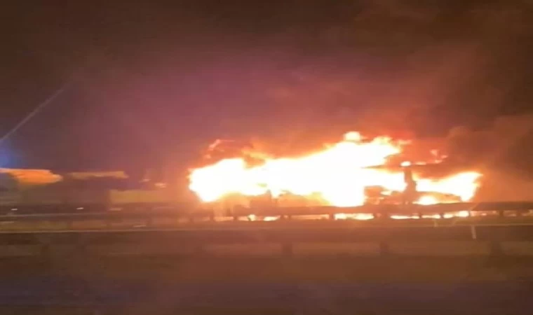 Öte yandan, otobüsün motor kısmında başlayan yangın, çevredeki bir vatandaşın cep telefonu kamerasına yansıdı.(DHA)