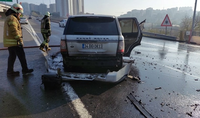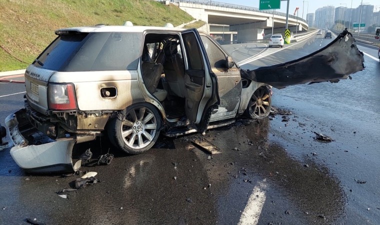 Gaziosmanpaşa Kuzey Marmara Otoyolu’nda seyir halindeki Range Rover marka lüks cip aniden alev aldı. Sürücüsünün kendisini son anda dışarıya attığı araç küle döndü.