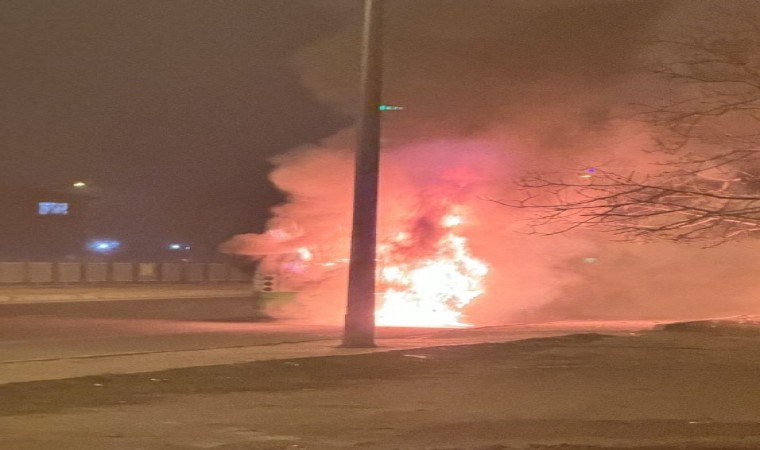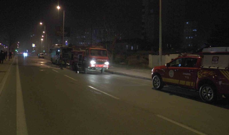 Kayseri’nin Kocasinan ilçesinde bir halk otobüsü seyir halindeyken motor kısmından alev aldı. Otobüsün servis dışı olması büyük bir faciayı önledi.