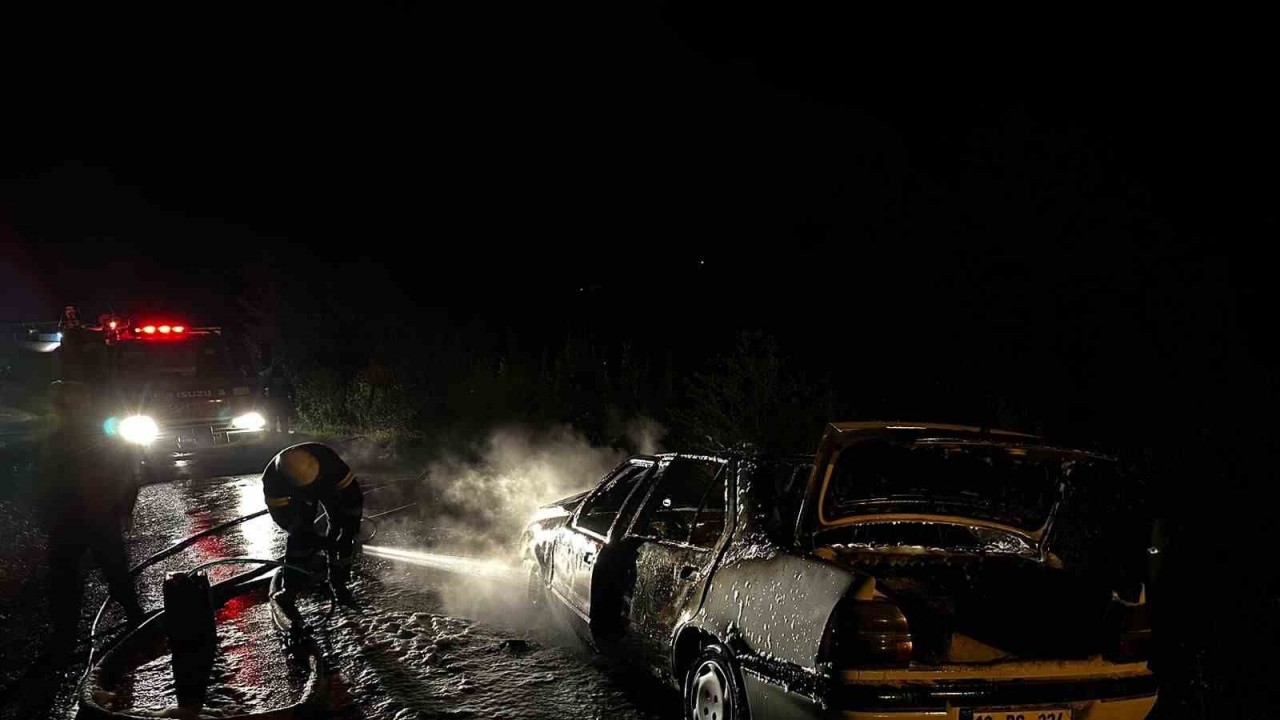 Seyir halindeyken alevlere teslim olan otomobil küle döndü