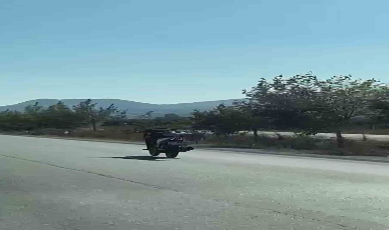 Gaziantep - Hatay karayolu Kırıkhan ilçesi mevkiinde akan trafikte motosiklet üzerinde akrobatik hareketler yapan şahıs cep telefonuyla görüntülendi. Canını hiçe saymadan motosikletin üzerine yatarak yolculuk yapan sürücü, yürekleri ağza getirdi. Anbean cep telefonu kamerasına yansıyan görüntülerde şahsın akan trafikte motosikletin üzerine yatarak aracı kullandığı görüldü.