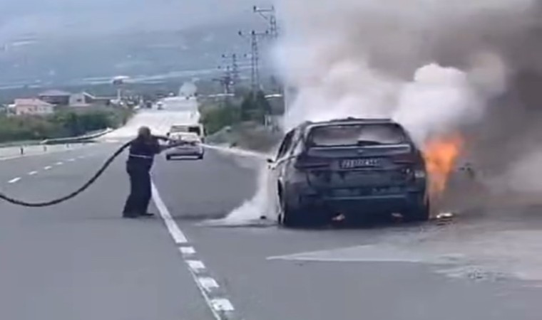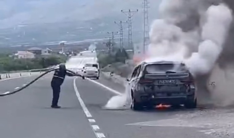 Malatya-Elazığ Karayolu Kıyıcak mevkiinde yaşanan olayda sürücü ismi öğrenilemeyen 23 ADZ 348 plakalı BMW marka cip, seyir halindeyken alev aldı. Çevredekilerin ilk müdahalesi ile yangın söndürülmeye çalışılırken, ihbar üzerine olay yerine itfaiye ekipleri sevk edildi. İtfaiye ekipleri alev topuna dönen araca müdahale ederek yangını söndürürken, geriye ise tamamen küle dönmüş bir araç kaldı.