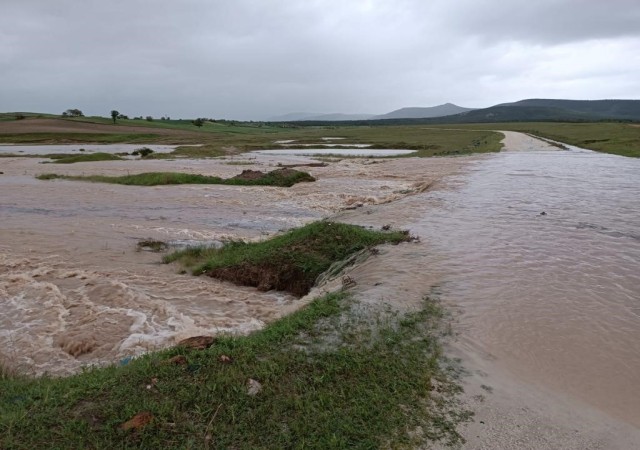 ESKİŞEHİR’DE YOĞUN SAĞANAK YAĞIŞIN ARDINDAN TAŞAN DERE SELE NEDEN OLDU, YOLLAR TRAFİĞE KAPANDI.