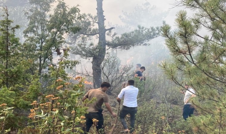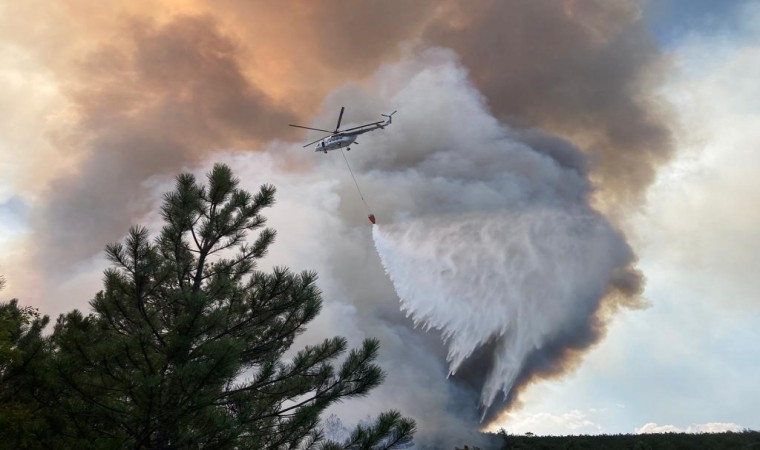 Eskişehir’in Seyitgazi ilçesinde başlayan orman yangınına ekipler ve bölge halkı karadan müdahale ederken 2 adet helikopter de havadan söndürme çalışmalarına katıldı.