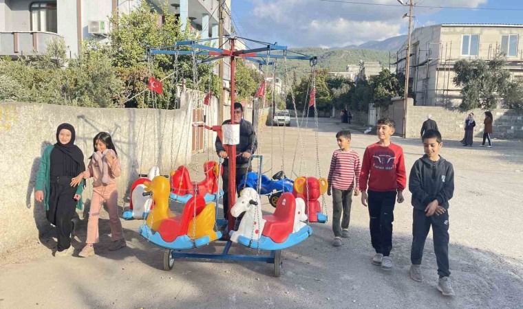 Osmaniye’de seyyar atlı karıncayla depremzede çocukları eğlendiren İbrahim Halil Cumak, hem ekmek parası kazanıyor hem de çocukların sevincine ve coşkusuna ortak oluyor.