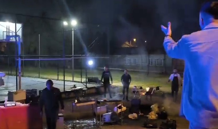 Dumandan ve kokudan rahatsız olan spor yapmaya gelen vatandaşların şikayeti üzerine olay yerine gelen Bursa Büyükşehir Belediyesi Zabıta ekipleri şahıslardan masa ve sandalyeleri toplayıp satışa son vermelerini istedi. Masaları toplatmayan şahıslar içlerinde çocuk ve kadın müşterilerin de yemek yediği sırada sandalyeleri kapıp zabıta ve polis ekiplerine fırlatmaya başladı. Başına sandalye isabet eden bir kişi kanlar içerisinde yere yığılınca olay yerine ambulans çağrıldı. Ellerinde bıçak olan şahıslar uzun süre polise ve zabıta ekiplerine sandalye fırlattı. Zabıta ve polisin biber gazı kullanmak zorunda kaldığı olay, meydan savaşlarını aratmazken takviye kuvvetin gelmesiyle birlikte şahıslar etkisiz hale getirilip gözaltına alındı.
