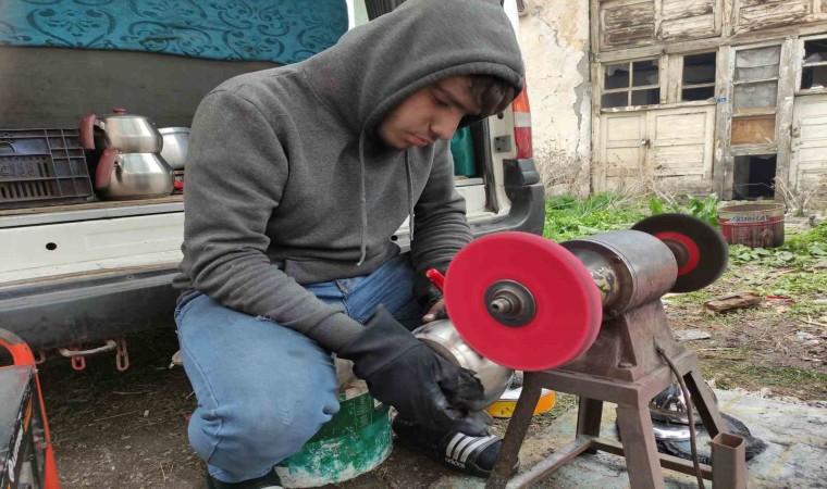 Türkiye’nin yok olmaya yüz tutmuş meslekleri arasında yer alan kalaycılığı babasından öğrenen usta Mehmet Tokgöz, yurdu şehir şehir dolaşarak aile geleneğini yaşatıyor.