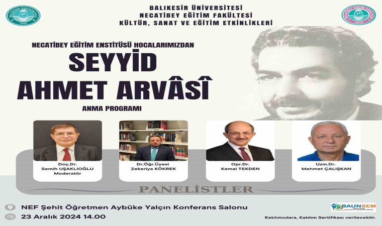Balıkesir’de 13 yıl görev yapan eğitimci, fikir adamı, yazar ve sosyolog Seyyid Ahmet Arvasi görev yaptığı Necatibey Eğitim Fakültesinde Arvasi’yi anma etkinliği yapıldı. Seyyid Ahmet Arvasi Hoca Eğitim Fakültesi kültür, sanat, eğitim etkinlikleri kapsamında Şehit Öğretmen Aybüke Yalçın konferans salonunda anıldı.