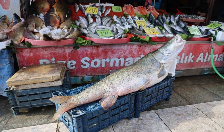 Elazığ Keban Barajı gölünde avlanan balıkçıların oltasına sezonun ilk dev turnası takıldı. 63 kilogram ağırlığında 1 buçuk metre uzunluğundaki turna Kapalıçarşı’daki tezgahta görücüye çıktı. Balıkçı Ramazan Erdoğan, yakaladığı dev turna balığının kilosunu 300 ile 350 lira arasında bir fiyatla satışa sunduklarını, tezgaha iner inmez satıldığını ifade etti.