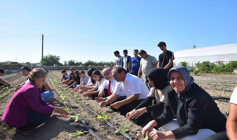 Antalya’nın Aksu ilçesinde bulunan tarım lisesi öğrencileri, sezonun ilk fidelerini toprakla buluşturdu.