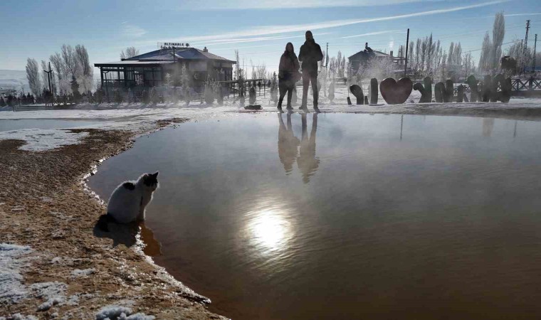 Güzel görüntünün kendilerini cezbettiğini söyleyen Fatih Hayta ise, “Normalde hava çok soğuktur ama suyun sıcaklığı burayı da ısıtmış. Buharı gördük dikkatimizi çekti görmeye geldik. Çok güzel bir ortam var” dedi.