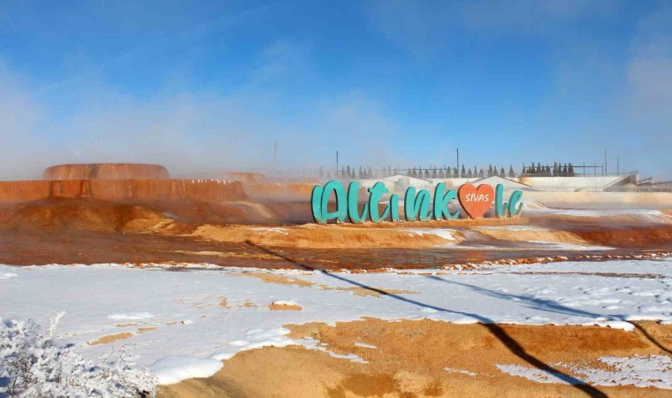 Sivas-Ankara karayolu üzerinde Sıcak çermik mevkiinde bulunan Altınkale, doğal güzelliğiyle görenlerin ilgisini çekiyor. Yaz aylarında binlerce vatandaşa ev sahipliği yapan Altınkale, kış mevsiminde de eşsiz güzellikleriyle kendine hayran bırakıyor. Beyaz örtüyle kaplanan travertenlerde, sıcak suyun soğuk havayla buluşmasıyla oluşan buhar ise görsel şölen sunuyor. Yaz-kış 48 derece sabit sıcaklığa sahip kaplıca suyu kenarında, adeta donan bir kedinin ise ısınmaya çalışması dikkat çekti. Yüzü, kirpiği ve vücudunun bir kısmı donan kediye İHA muhabiri sahip çıktı.