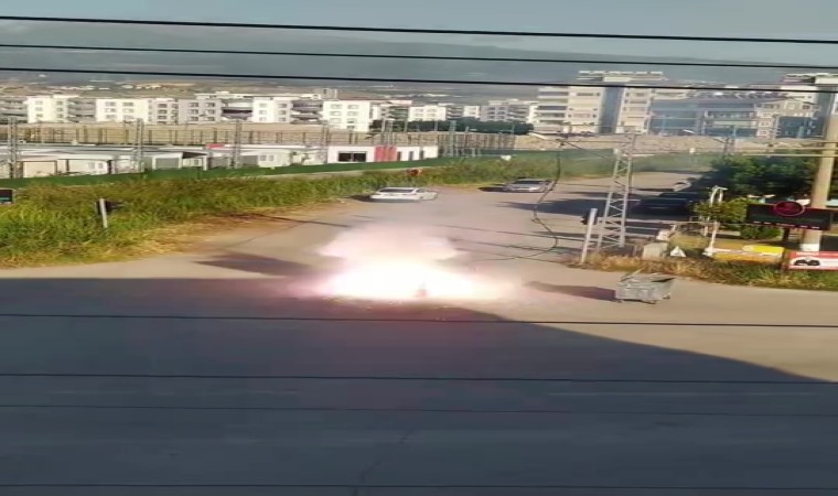 Hatay’ın Arsuz ilçesinde sıcağın etkisiyle kopan elektrik telinde yaşanan patlama cep telefonu kamerasına yansıdı.