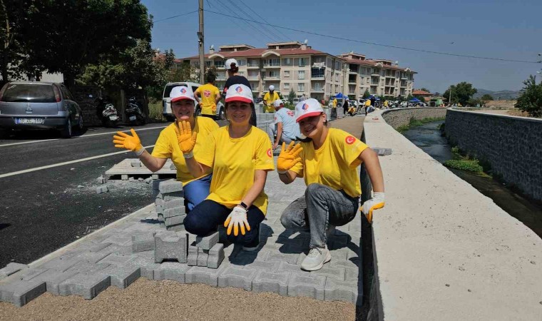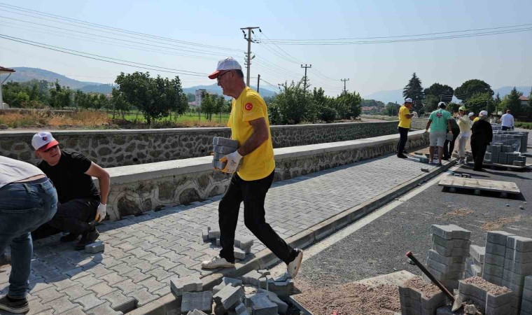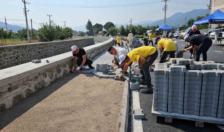Sındırgı Belediye Başkanı Serkan Sak, eşi Gonca Sak, başkan yardımcıları, belediye personeli, meclis üyeleri, Kurtuluş mahalle muhtarı Ramazan Sabay ve mahalle sakinleri ile birlikte kaldırımlara taş döşedi. Mahalle muhtarı ve sakinlerinin talebi üzerine gerçekleştirilen etkinlikte vatandaşlar mahalleleri için elini taşın altına koydu.