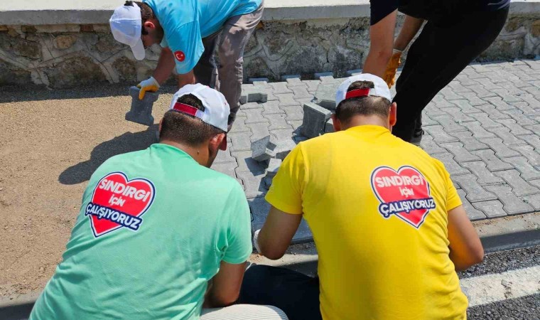 Asfalt çalışmasının tamamlanması ile birlikte Sındırgı Belediyesi sosyal medya üzerinden çağrıda bulundu. Sındırgı Belediyesinin “Sındırgımızın çehresini değiştirmeye, imece kültürünü yaşatmak için senin de bir taşın olsun” sloganıyla başlattığı etkinlikte kadın, erkek çok sayıda vatandaş eldivenleri takıp parke döşedi. Parke taşları elden ele dolaşarak kaldırımla buluştu.