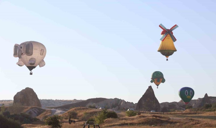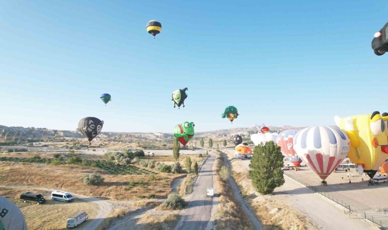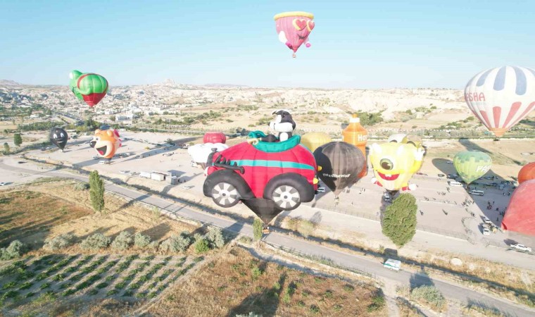 Göreme beldesindeki festival alanında, sabahın erken saatlerinde ekiplerin hazırlıklarının ardından çeşitli figürlerdeki balonlar peş peşe gökyüzüne yükseldi. Değişik renk ve figürlü sıcak hava balonları, Kapadokya’nın eşsiz manzarasında peribacaları ve doğal kaya oluşumlarının üzerinde süzülürken, yerli ve yabancı turistler ortaya çıkan renkli manzarayı izledi.
