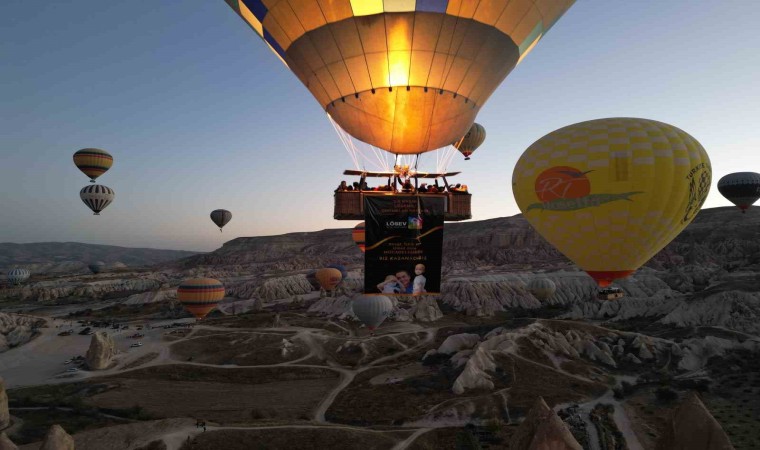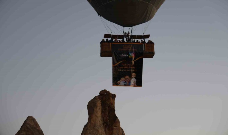Lösemili Çocuklar Sağlık ve Eğitim Vakfı (LÖSEV), 2-8 Kasım Lösemili Çocuklar Haftası nedeniyle farkındalık oluşturmak için Kapadokya’da havalanan sıcak hava balonlarına LÖSEV pankartları astı.