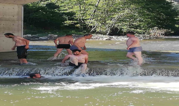 Bolu’nun Seben ilçesinde sıcak havadan bunalan vatandaşlar Seben Çayı Deresi’nin buz gibi suyuna girerek serinledi.