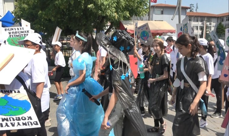 Bartın’da Türkiye Çevre Haftası nedeniyle düzenlenen kortej yürüyüşünde renkli görüntüler ortaya çıktı. Bir grup öğrenci, sıcak havaya rağmen giydikleri çöp poşeti ile yürüyerek çevre mesajı verdi.