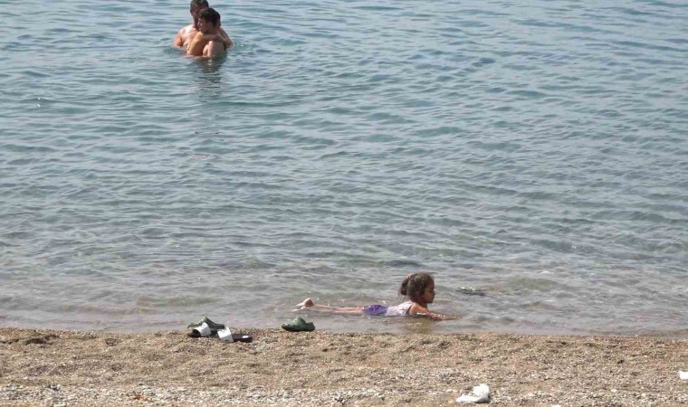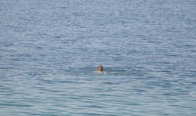 BİTLİS (İHA) – Bitlis’te etkili olan sıcak havada serinlemek isteyen vatandaşlar Van Gölü’ne girdi.