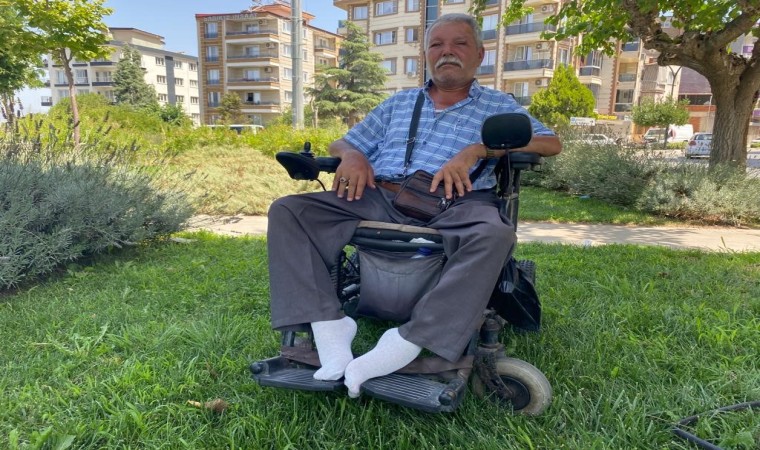 Manisa’nın Alaşehir ilçesinde araç termometreleri 49 dereceyi gösterirken, markete gitmek için evinden çıkan ve sıcak havadan olumsuz etkilenen engelli bir vatandaş, ağaç gölgesine sığındı.