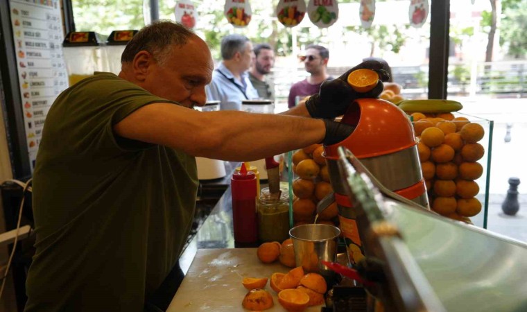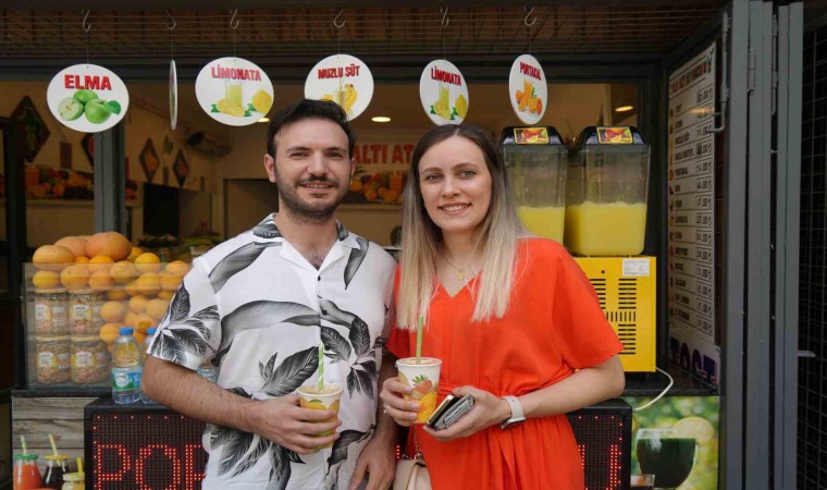 Serinlemenin yanı sıra vitamine olan ihtiyaçlarından dolayı atom içeceğe yöneldiklerini belirten Mehmet Ali ve Semra Çoban, “Almanya’da yaşıyoruz. Her sene Gaziantep’e geliyoruz. Genellikle de sıcak aylarda geldiğimiz için taze sıkım içecekleri tüketiyoruz. Hem sıcaklık hem de vitamine olan ihtiyacımız bizi bu içeceklere yöneltiyor” diye konuştu.