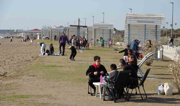 Son 1 haftadır sağanak yağış ve soğuk havanın etkisinde olan Manavgat’ta dün ve bugün yazdan kalma bir havanın hakim olmasıyla birlikte okulların da tatil olmasını fırsat bilen Manavgatlılar ailecek sahillere akın etti.