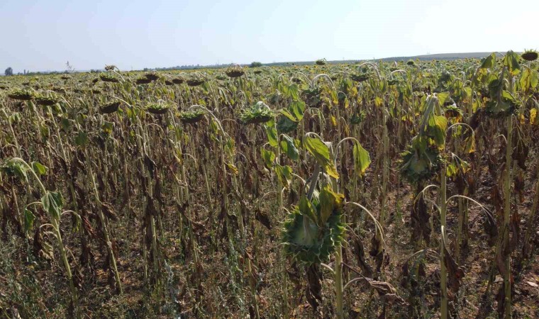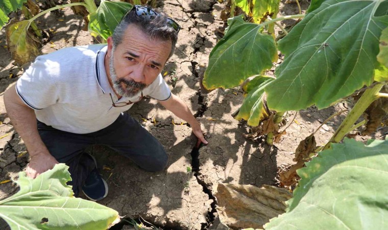 Haziran ayında ayçiçeklerinin içinin olgunlaşma dönemi olduğunu aktaran Ziraat Mühendisi Barış Kurtaran, “Geçtiğimiz hafta yaşanan aşırı sıcaklar nedeni ile ayçiçekleri neredeyse 1 ay erken kurudu. Erken kuruması verim kaybına neden olacak. Baharda aldığı yağmurları baz aldığımızda 300-400 kilo verim vermesi gerekirken şuan sıcaklar sonrası 250 kiloya kadar verim kaybı olması söz konusu. Bu yaşanan sıcaklar ciddi bir verim kaybı yaşatacak. Bu kuraklık ve sıcaklıkla 200-250 kilo verimin üzerine çıkması pek mümkün görünmüyor. Havanın çok ısınmasından kaynaklı arazide buharlaşma ani olduğu için çatlaklar oluştu. Ayçiçek kökleri ile toprağın bağını koparmış oldu. Burada mücadele yapabilecek hiç bir şey yok. Ayçiçeklerinin boynunun bükülmesi bile kuraklıkla alakalı. Ben 10 yıldır ayçiçek ekimi yapıyorum böyle bir zararı bugüne kadar görmedim” dedi.