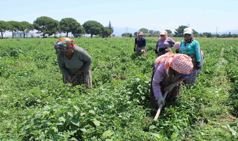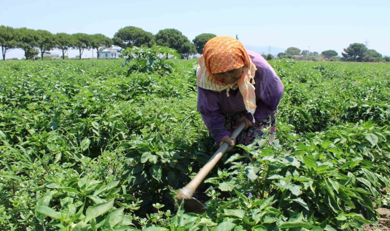 Türkiye’nin en sıcak illerinden olan Aydın’da kadınların biber mesaisi başlarken, güneşin altında tarlada çapalama yapan kadınları sıcaklar yıldırmıyor.