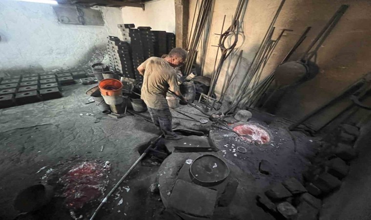 Kahramanmaraş’ta 600 dereceden başlayarak bin 200 dereceye kadar ulaşan ateşin başında alüminyum döküm işi yapan ustalar, sıcağa meydan okuyarak ekmek parası kazanıyor.