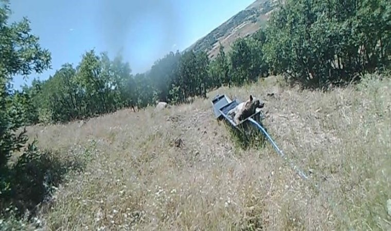 Elazığ’da sıcaktan bunalan boz ayı suvata girerek serinledi. Boz ayının o anlarını foto kapana yansıdı.