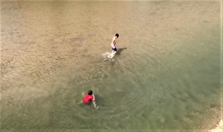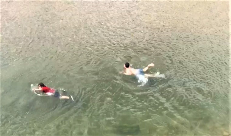 Bayburt kent merkezinin ortasından geçen Çoruh nehri, bugünlerde azalan debisiyle dikkat çekiyor. Su seviyesinin düşmesi ve artan sıcaklıklar nedeniyle bazı çocuklar burada yüzerek serinliyor. Bayburt’un Mescit Dağları’ndan doğan ve dünyanın en hızlı akan nehirleri arasında yer alan Çoruh nehrinde, havaların ısınması ve yağışların azalması ile su seviyesinin düştüğü gözlemleniyor. Su seviyesinin düşmesini fırsat bilen iki çocuk ise normalde tehlikeli olan ama bu günlerde durgunlaşan Çoruh nehrinde, etraftan geçen kalabalığa aldırmadan yüzerek, hem serinliyor hem de eğleniyor.